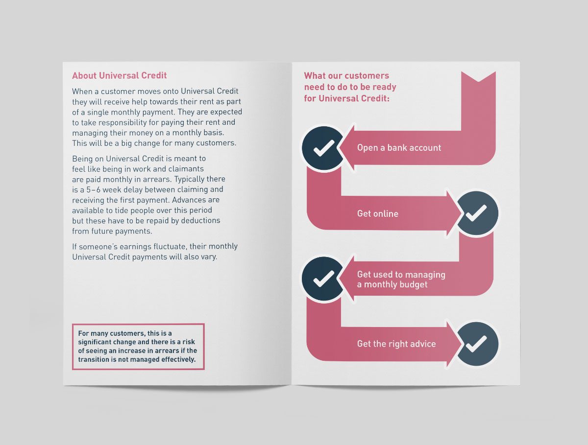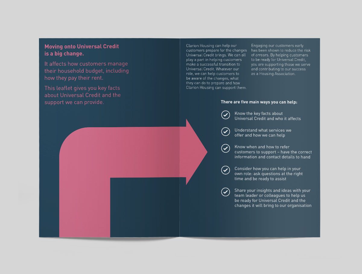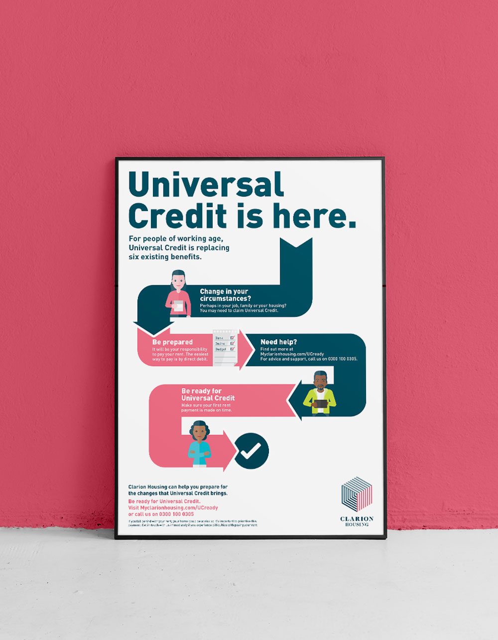 Claremont combined deep audience insight, co-production with Clarion staff and techniques from behavioural psychology to develop the Universal Credit is Here campaign. New materials, training and tools were tested in the field and refined before rolling out across the UK. Frontline staff reported that the materials helped them reassure residents and prevent problems from taking root.