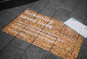 GP practices in the borough received information for digital screens, and ‘doormat’ floor stickers were distributed to GP practices and community organisations in the most deprived areas of the borough. These innovative and enduring assets prominently display key campaign messages at building entrances, prompting residents to recognise the screening kit in the way it will appear in their lives, and understand its importance.